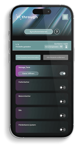 Mit der Vithrough App für iOS und Android erleben Ihre Kunden Maschinen und Anlagen in höchster Detailgenauigkeit – noch über die Möglichkeiten von webAR hinaus. Durch die leistungsstarke AR-Technologie können Nutzer nicht nur das Äußere betrachten, sondern sogar in die Maschinen hineinlaufen und komplexe Details entdecken.